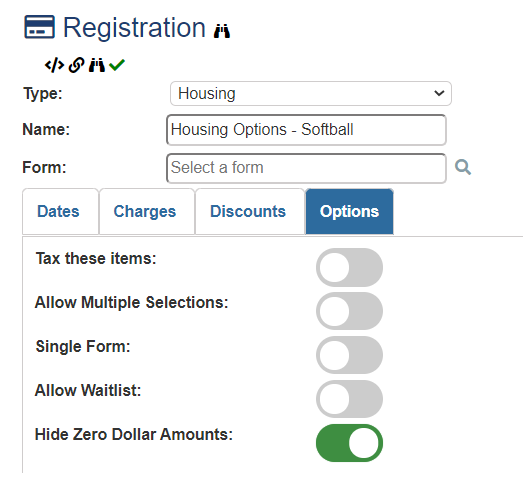 Do you have a registration offering where you want to hide the $0.00 amount showing up on the registration page? After adding a registration option click on the Options tab and turn on the Hide Zero Dollar Amount toggle. This will remove the $0.00 amount from the main registration page showing just the toggle button. This is a good option when you need to ask a question from the start directing the attendee to choose the best and most relevant option.